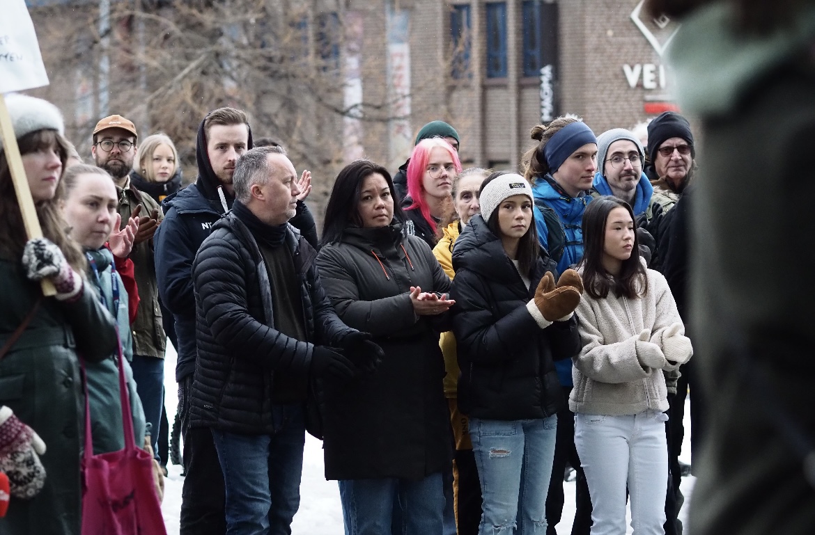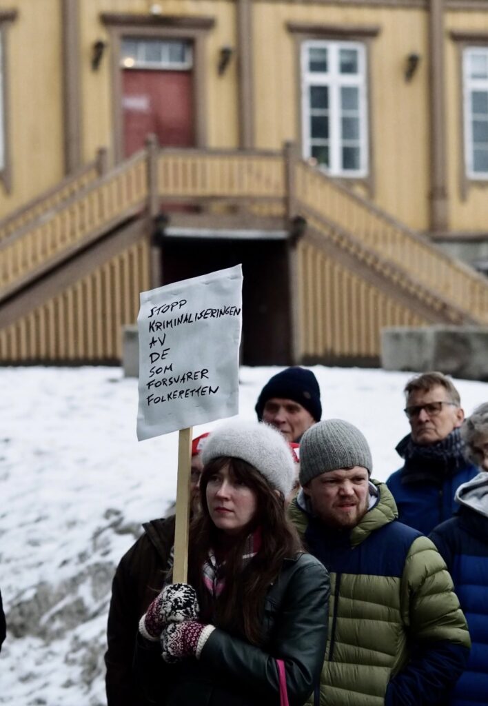 Blant de fremmøtte på demonstrasjonen i Tromsø i dag var en rekke sterke og viktige appeller. Tommy Olsen, som slapp ut av varetekt fredag, mens han venter på behandling av saken sin, holdt selv appell.